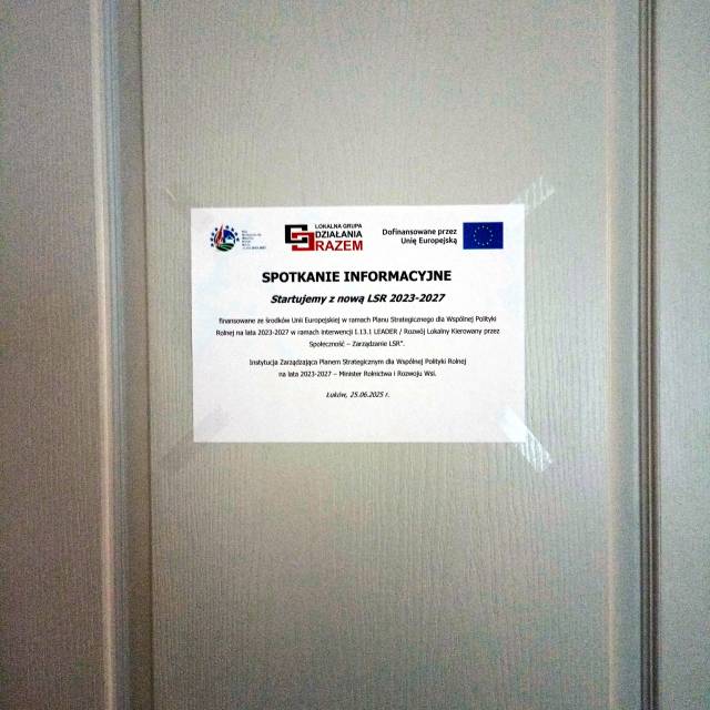 Spotkania informacyjne są realizowane w ramach interwencji I.13.1 LEADER Rozwój Lokalny Kierowany przez Społeczność (RLKS)- komponent Zarządzanie LSR. Instytucja Zarządzająca Planem Strategicznym dla Wspólnej Polityki Rolnej na lata 2023-2027 – Minister Rolnictwa i Rozwoju Wsi.