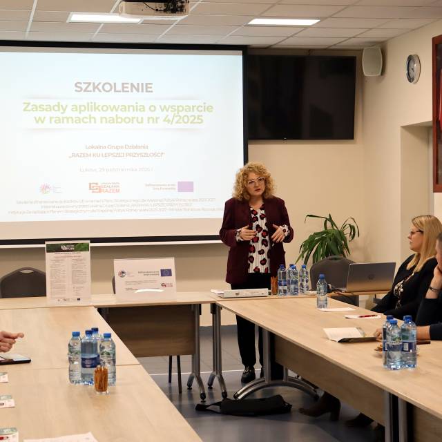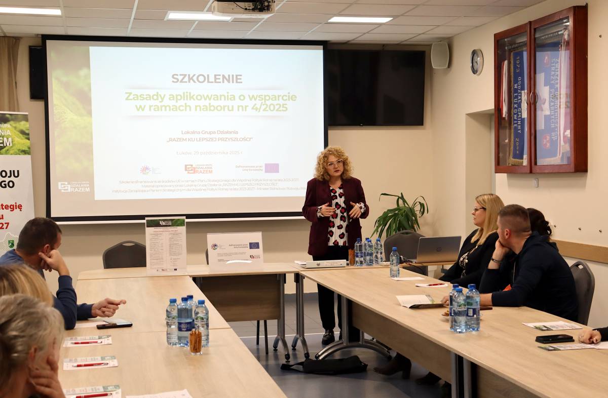 29 października 2025 r. w sali konferencyjnej Urzędu Gminy w Łukowie odbyło się szkolenie zorganizowane przez Lokalną Grupę Działania „RAZEM” dla przedstawicieli organizacji pozarządowych z obszaru działania LGD. Spotkanie poświęcone było zasadom aplikowania o wsparcie w ramach planowanego naboru nr 4/2025, dotyczącego włączenia społecznego w ramach przedsięwzięcia P.1.2 „Aktywni dla siebie i obszaru LGD RAZEM”.
