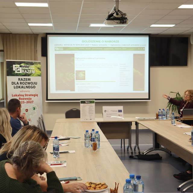 Spotkanie przebiegło w atmosferze zaangażowania i współpracy. Uczestnicy aktywnie zadawali pytania, dzielili się doświadczeniami i pogłębiali swoją wiedzę na temat procedur związanych z aplikowaniem o środki w ramach naboru. Przypominamy, że udział w szkoleniu jest punktowany w ramach lokalnych kryteriów wyboru operacji.