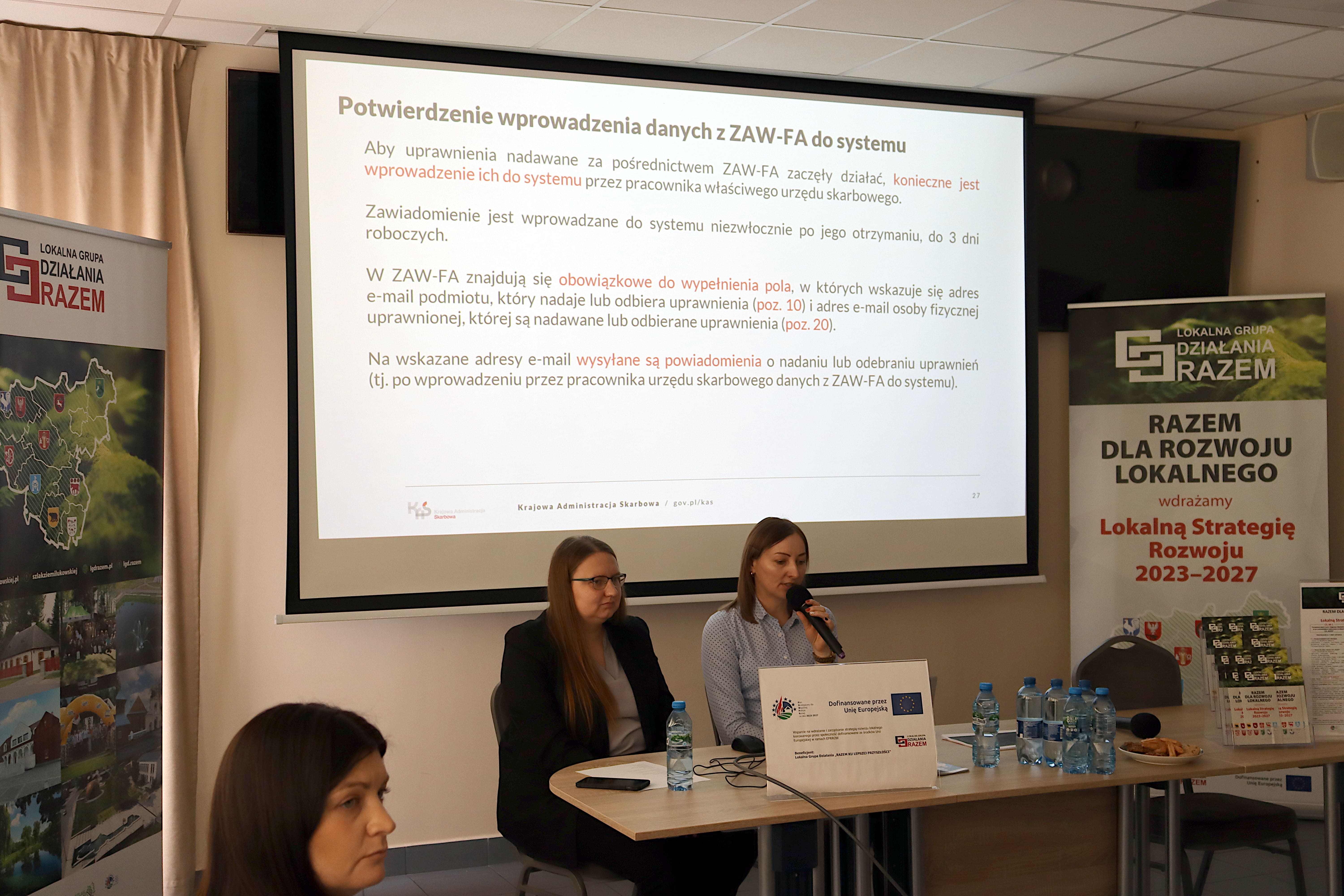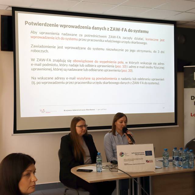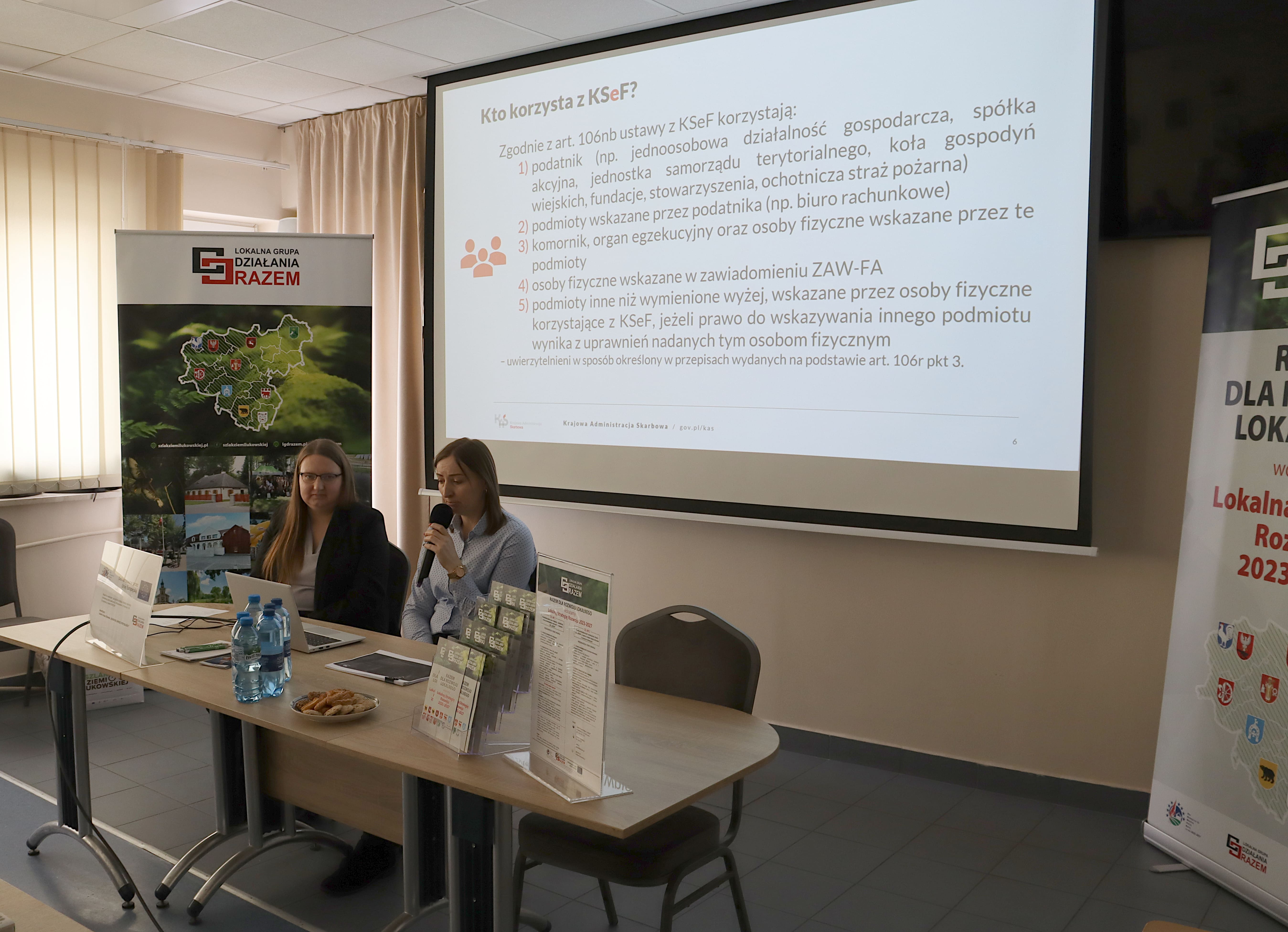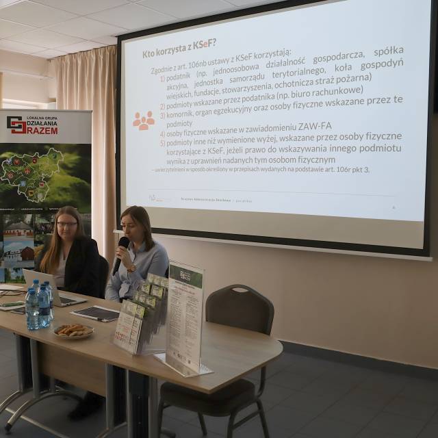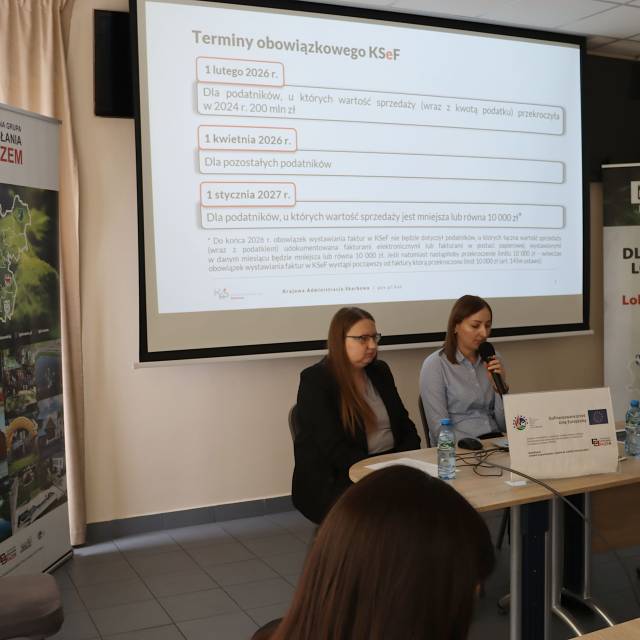 Część merytoryczną poprowadziły Martyna Ługowska i Małgorzata Nurzyńska – koordynatorki KSeF z Urzędu Skarbowego w Łukowie, które w przystępny i praktyczny sposób omówiły zasady funkcjonowania systemu. W spotkaniu uczestniczył również Naczelnik Urzędu Skarbowego w Łukowie, Pan Grzegorz Michałowski, podkreślając, jak ważne jest sprawne wdrożenie KSeF w codziennej pracy organizacji pozarządowych.