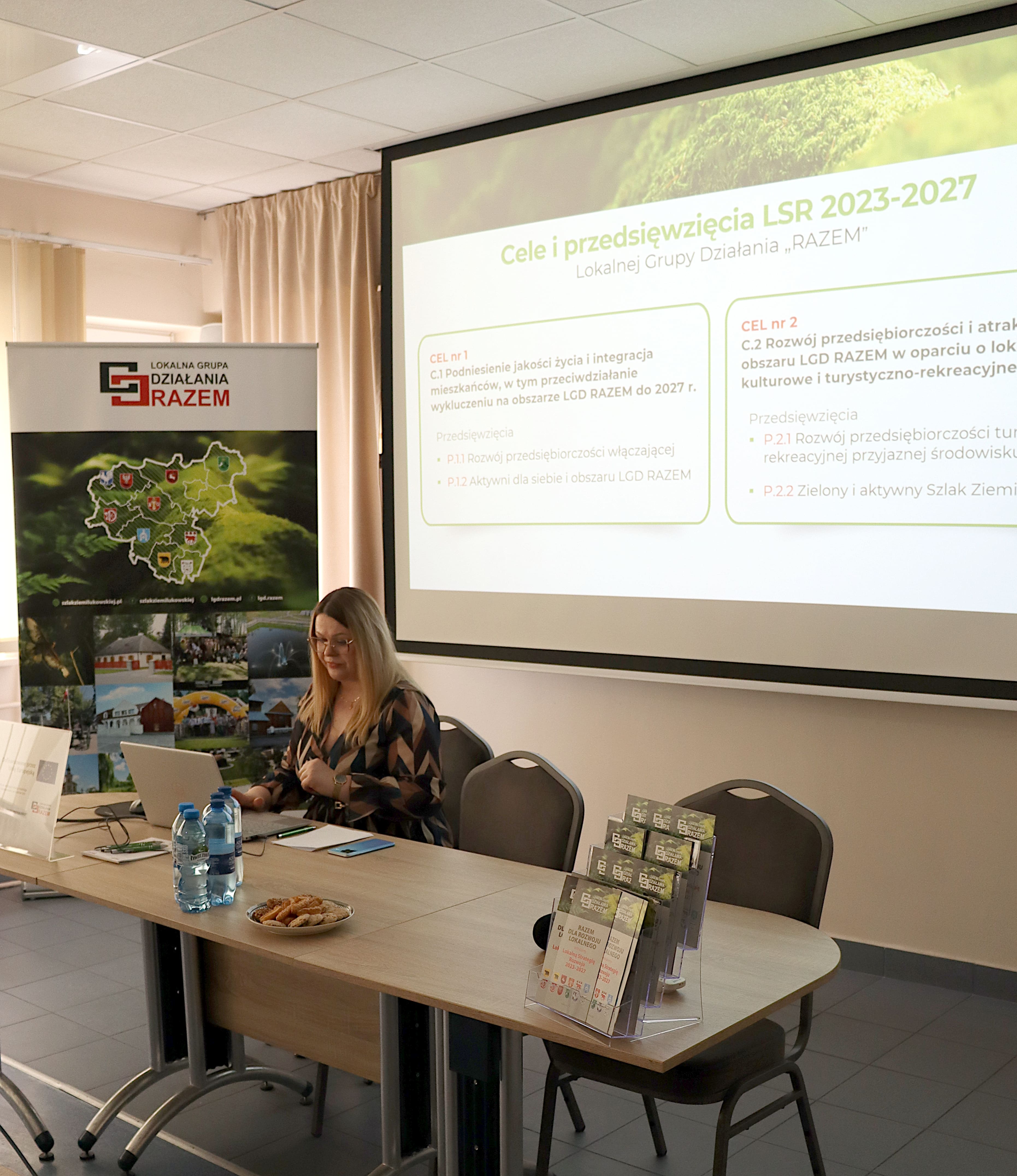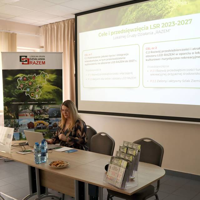 Drugą część poprowadziła Ewelina Ponikowska – Dyrektor Biura LGD „RAZEM”, przedstawiając aktualne możliwości pozyskania środków w ramach PS WPR 2023–2027.