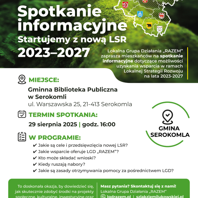 Spotkanie informacyjne „Startujemy z nową LSR 2023-2027" w Serokomli o godz. 16:00