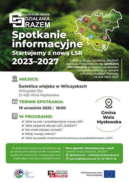 IX - ostatnie spotkanie informacyjne „Startujemy z nową LSR" w Wilczyskach 19.09.2025, godz. 16:00