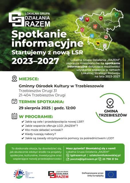 VII Spotkanie informacyjne „Startujemy z nową LSR" w Trzebieszowie - 29.08.2025 | 12:00